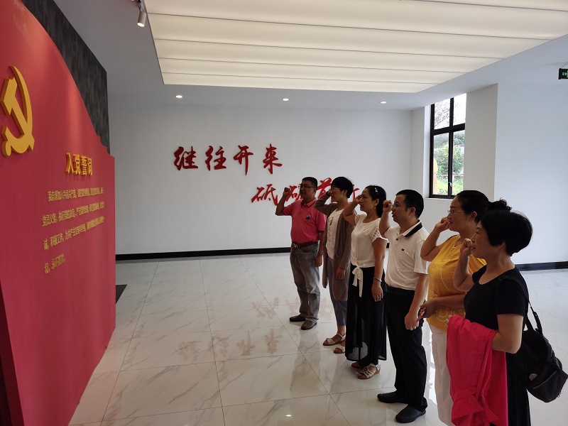 小分队沿途参观了富顺县乡村振兴公司,这里陈列了党的历史上的重大事件与自贡籍革命先烈的事迹以及当代的先进模范人物,是富顺县委党性教育基地。小分队一行在参观前伫立大厅,面对入党誓词,在党总支书记兰永海的带领下重温了入党誓词,进一步坚定宣传习近平新时代中国特色社会主义思想、宣传脱贫攻坚成就的决心和信心。