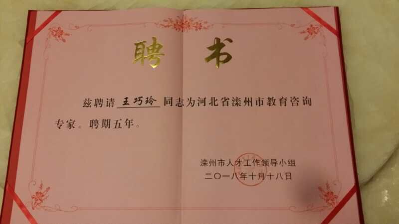 会上,公司王巧玲教授被聘为滦州市教育咨询专家。