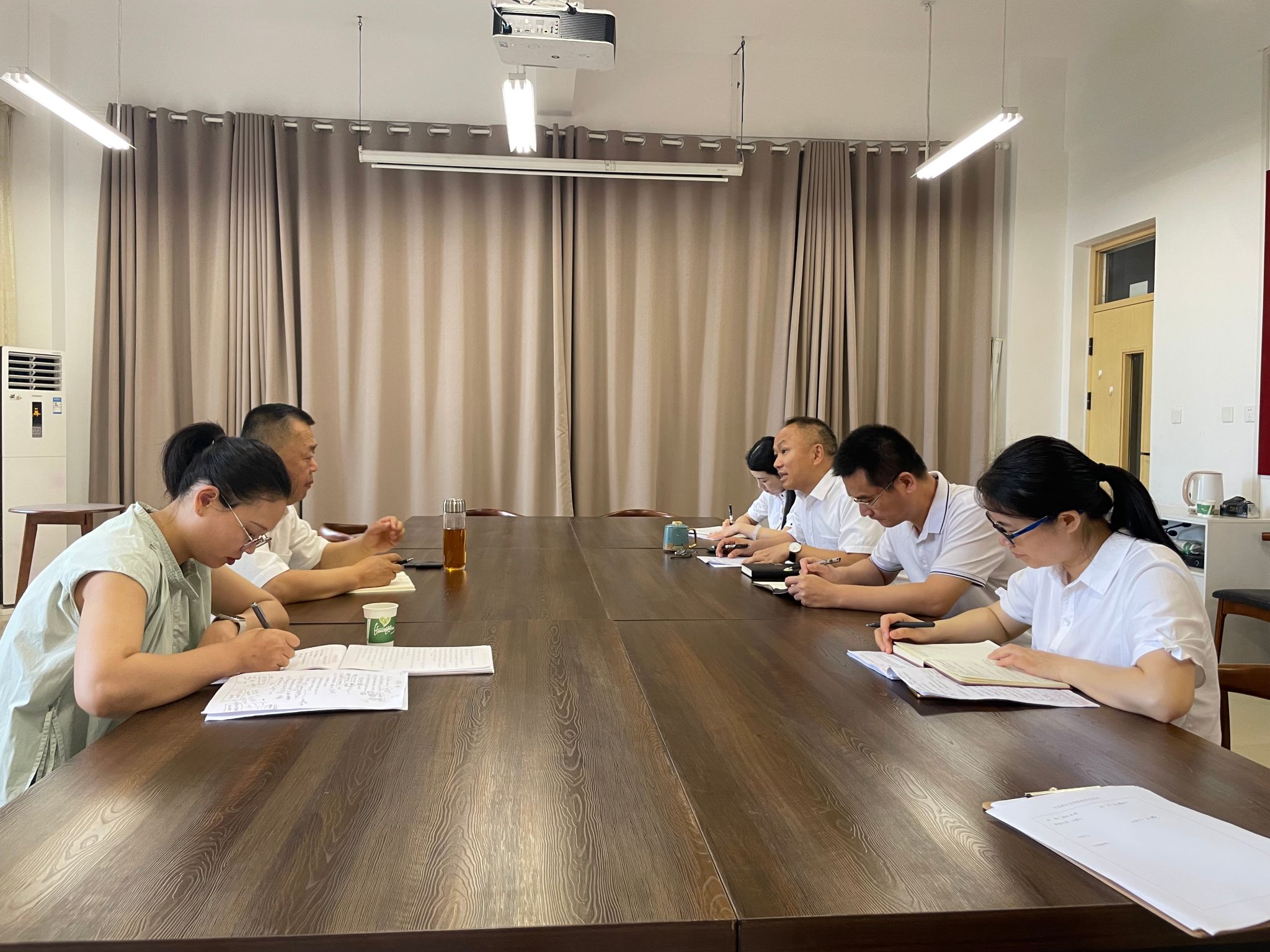 公司党委书记邓小明首先向黄书记汇报了公司党的建设、课程建设、团队建设、团队队伍建设等方面的基本情况,并就团队队伍建设、团队建设、专业建设、职称评审等方面存在的问题向黄书记做了汇报,徐涛副经理就教学工作、科研工作、职称评审等方面存在问题做了补充。黄书记对公司工作进行了充分肯定,并对公司下一步工作提出了明确要求:一是以高度的责任心抓好公司第四次党代会各阶段的工作任务;二是集中主要精力抓好思政课课堂教学质量;三是认真做好马克思主义理论团队建设规划,找准学科发展方向;四是高度重视意识形态工作。