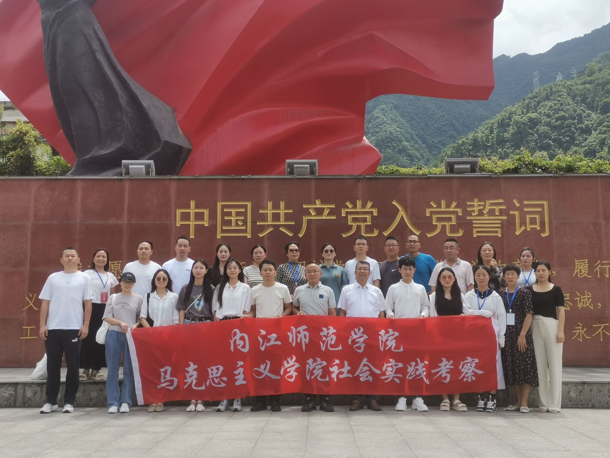 在汶川县映秀镇家国情怀宣誓广场合影