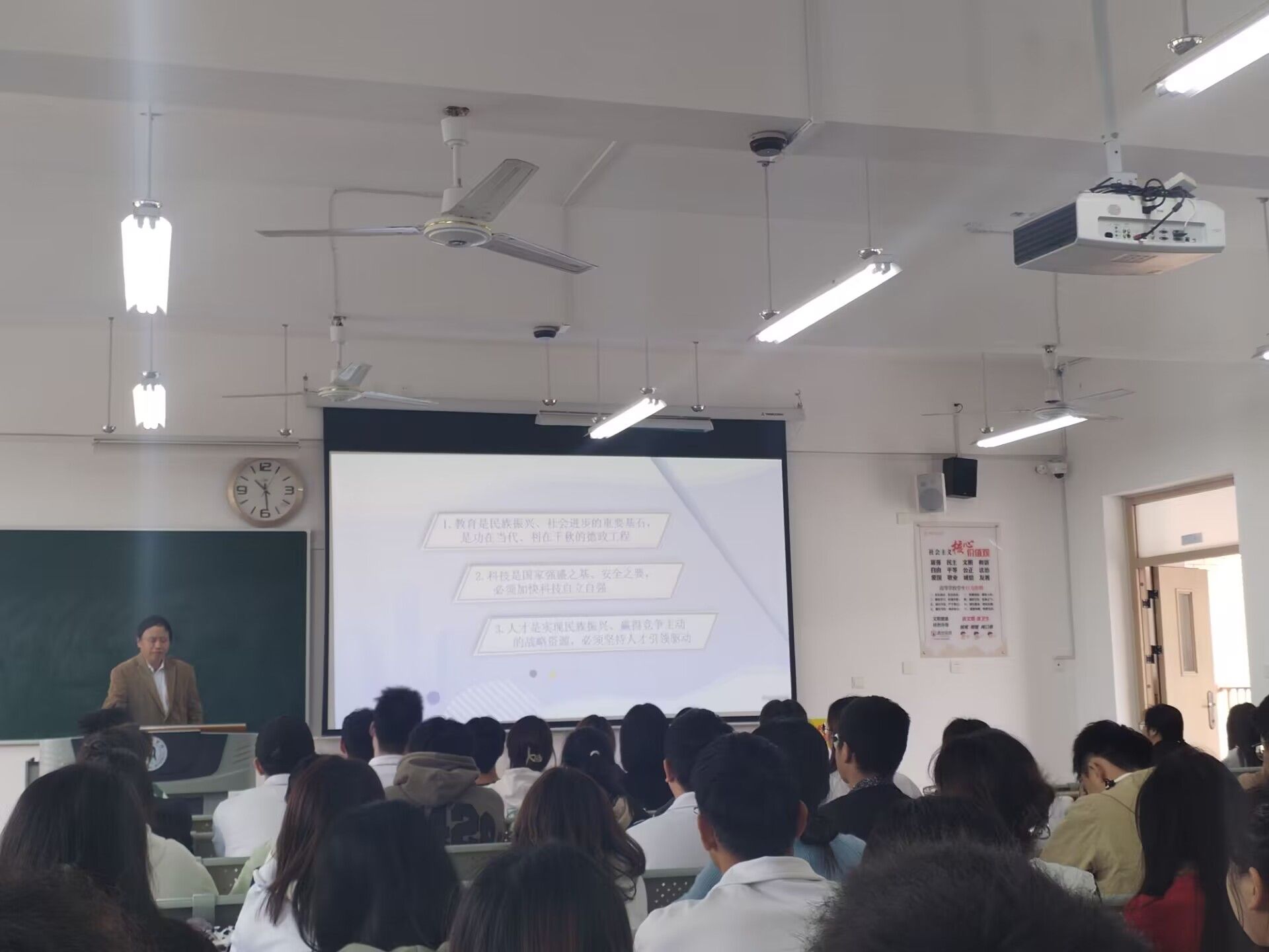 10月30日,公司党委副书记、董事长陈晓春在明德楼A302教室为政管公司23级2班同学作了题为“改革的实践续篇 现代化的时代新篇”的主题教育专题授课。