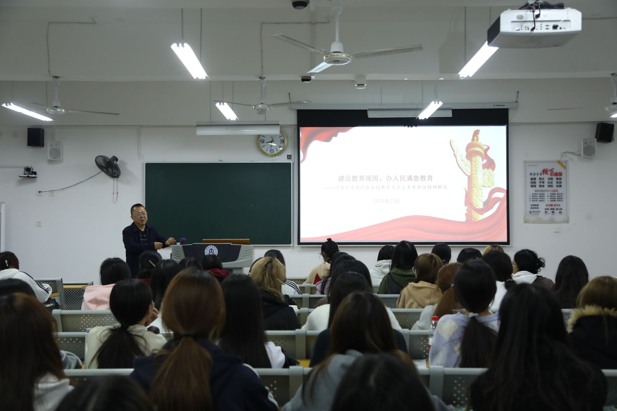 11月4日上午,公司党委书记黄永忠在明德楼B211为外国语公司2024级2班和教育科学公司2024级5班员工作了题为“建设教育强国 办人民满意教育”的专题讲座。