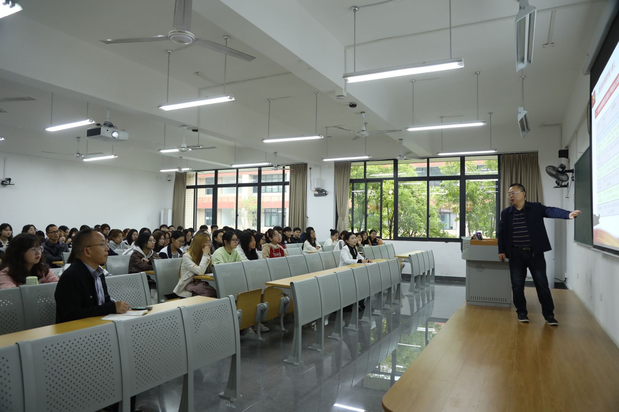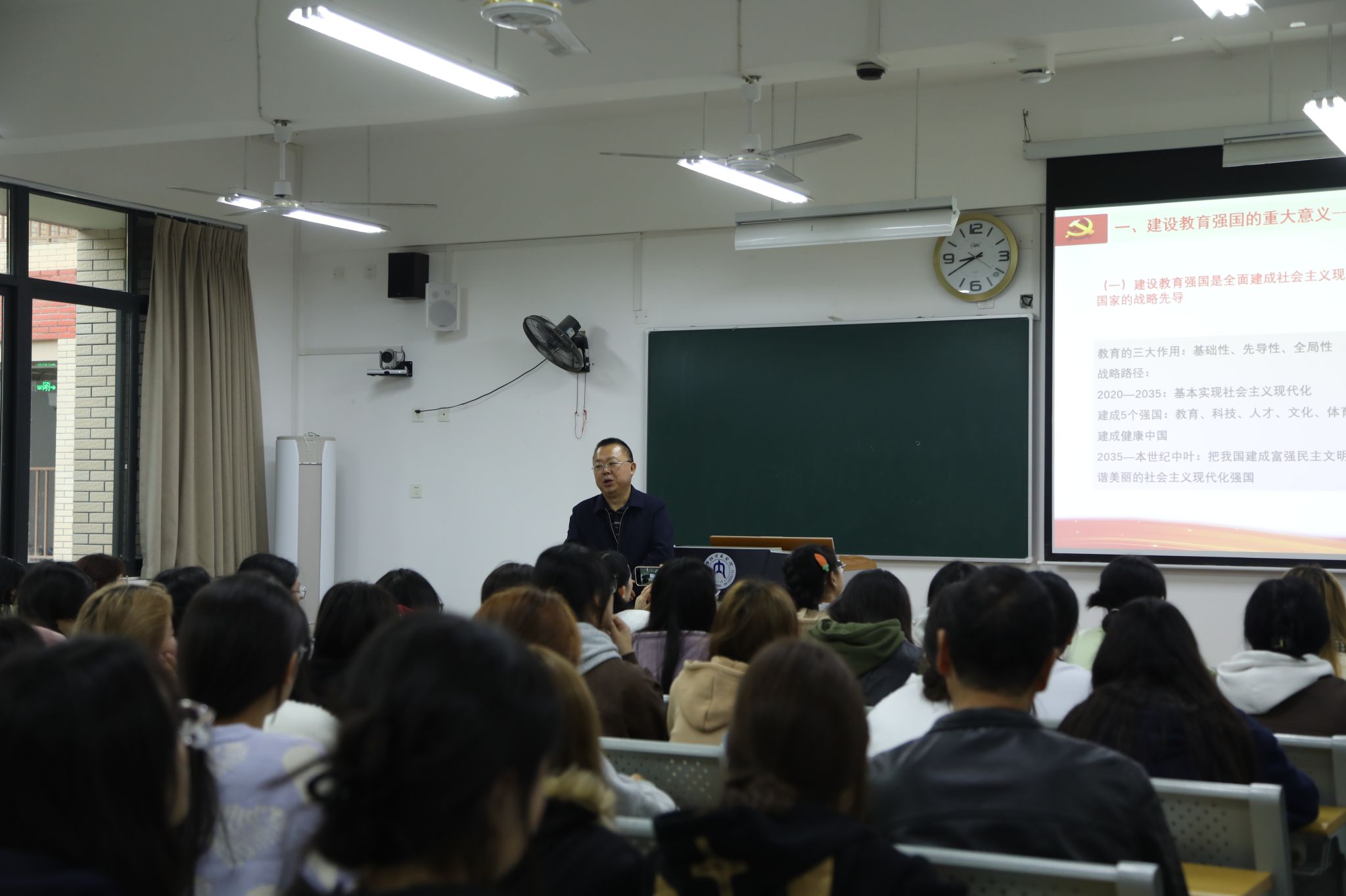 黄书记以介绍改革开放以来召开的4次全国教育工作会议和2次全国教育大会基本情况作为切入点,向同学们详细讲解了教育强国的科学内涵、建设教育强国的重大意义、建设教育强国恰逢其时和建设教育强国的战略举措四个方面的问题。