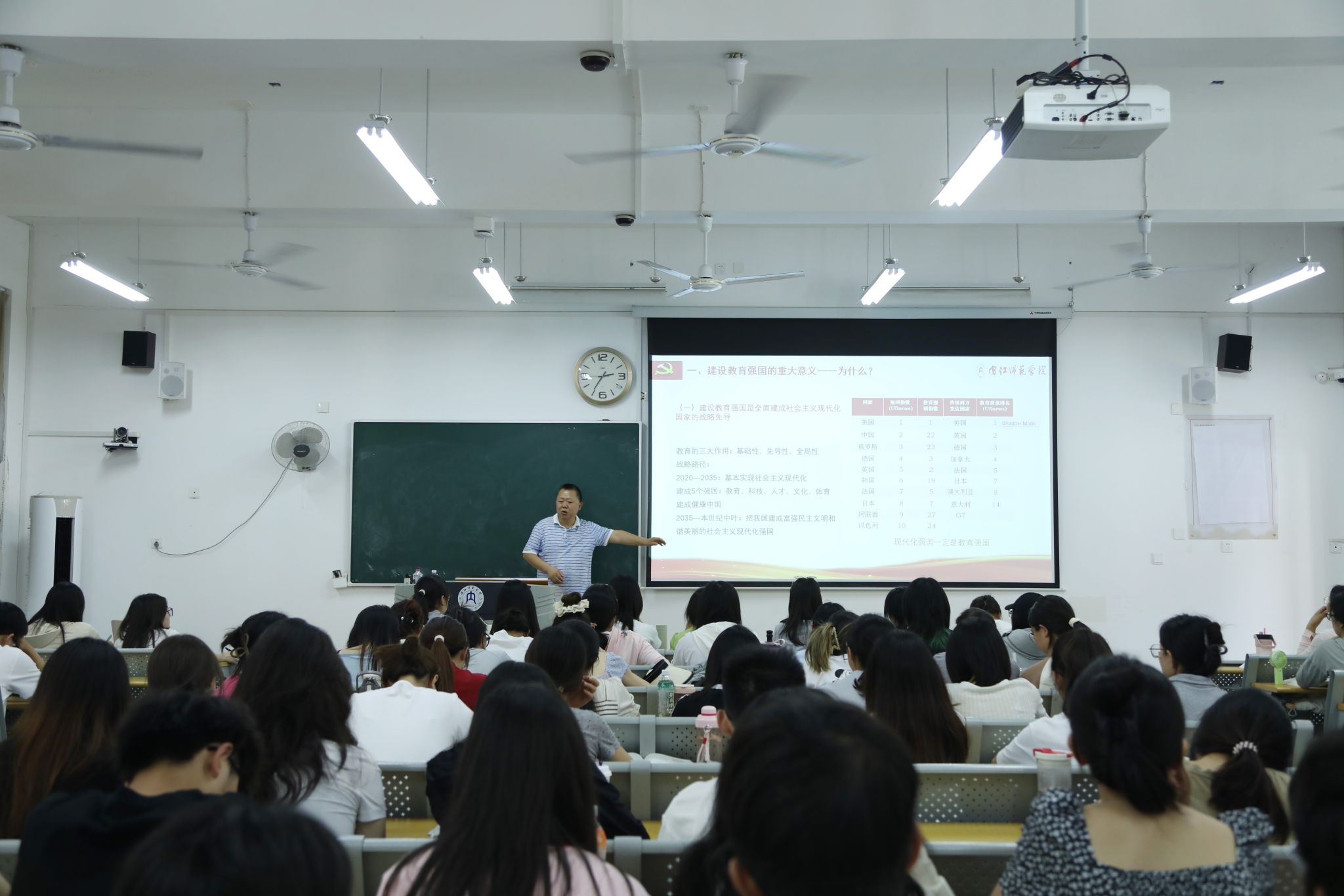 黄书记以介绍改革开放以来召开的4次全国教育工作会议和2次全国教育大会基本情况作为切入点,向同学们详细讲解了教育强国的科学内涵、建设教育强国的重大意义、建设教育强国恰逢其时和建设教育强国的战略举措四个方面的问题。