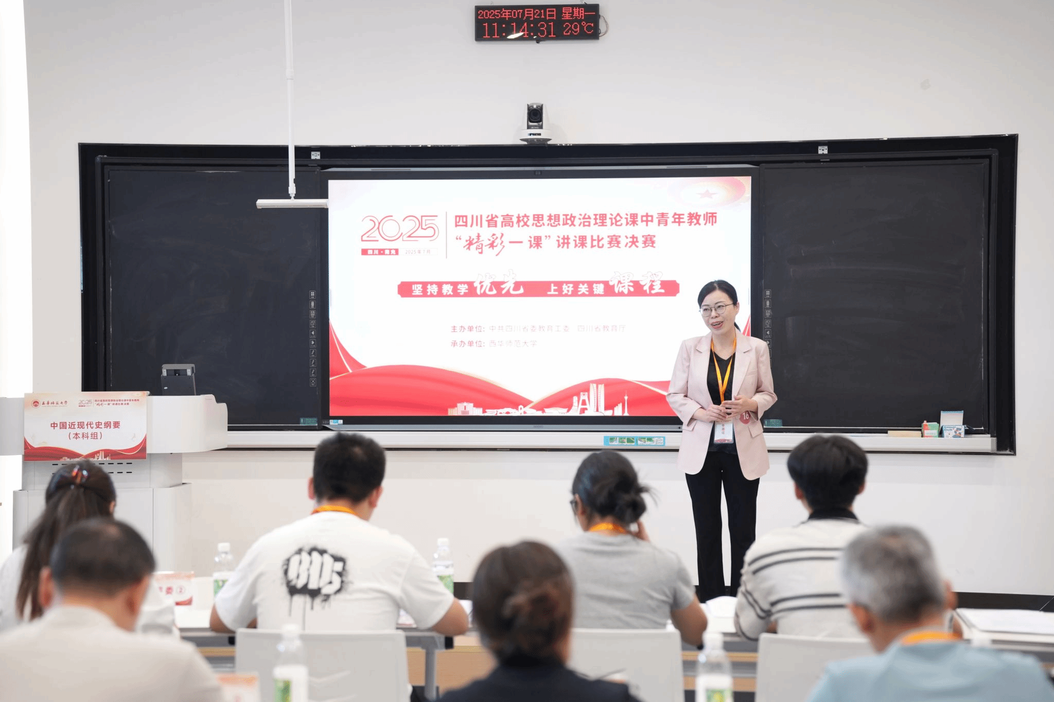 在近日落幕的四川省2025年高校思想政治理论课中青年教师“精彩一课”讲课比赛决赛中,公司胡静老师凭借出色表现,荣获“中国近现代史纲要”(本科组)一等奖。