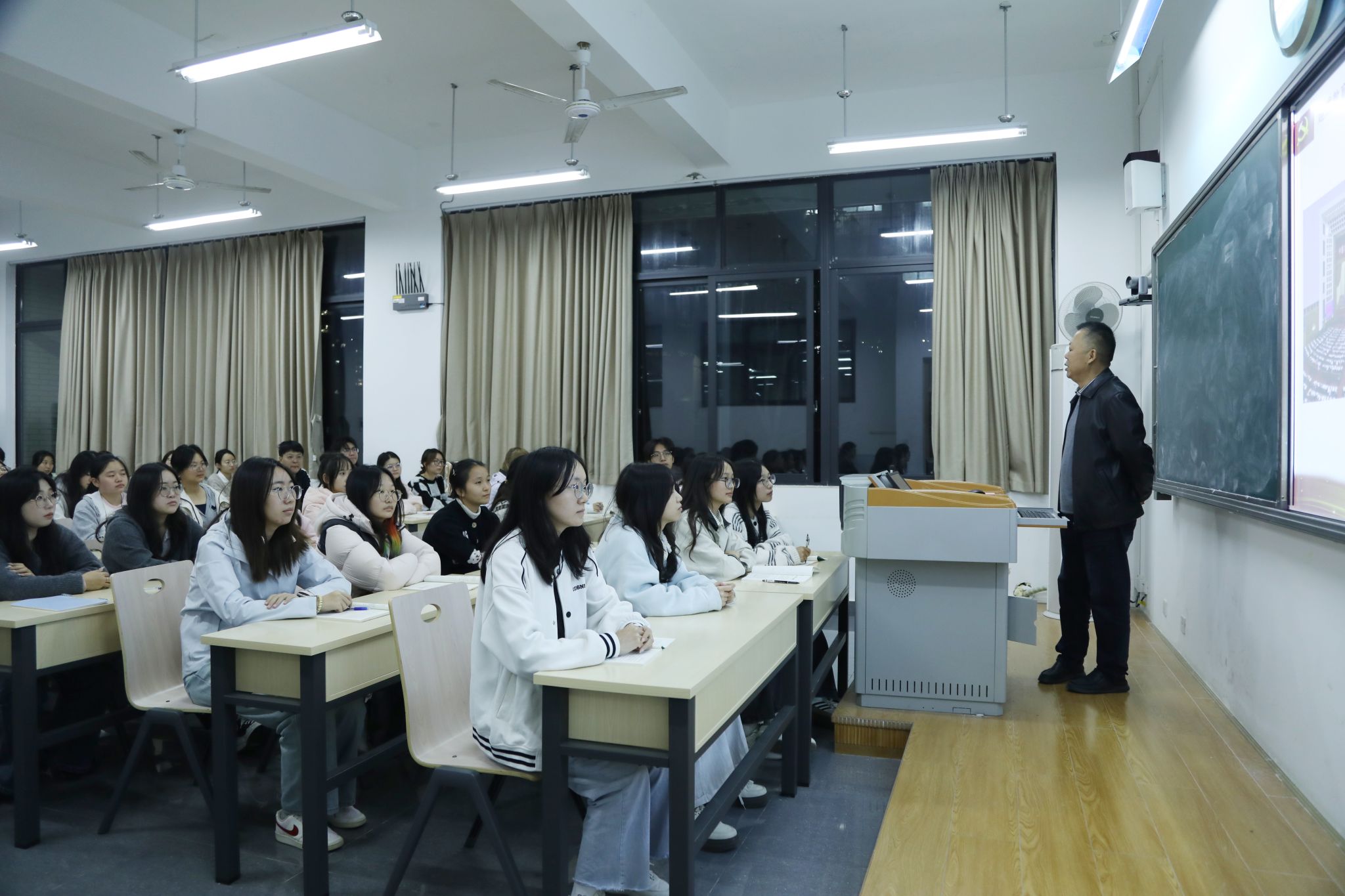 10月30日晚19:00,公司党委书记黄永忠在明德楼A105教室为文公司2024级3班全体员工带来了一场以“建设教育强国 办人民满意教育”为主题的思政课。本次授课旨在引导员工深刻把握教育强国的时代内涵与战略意义,筑牢为国求学的思想根基。