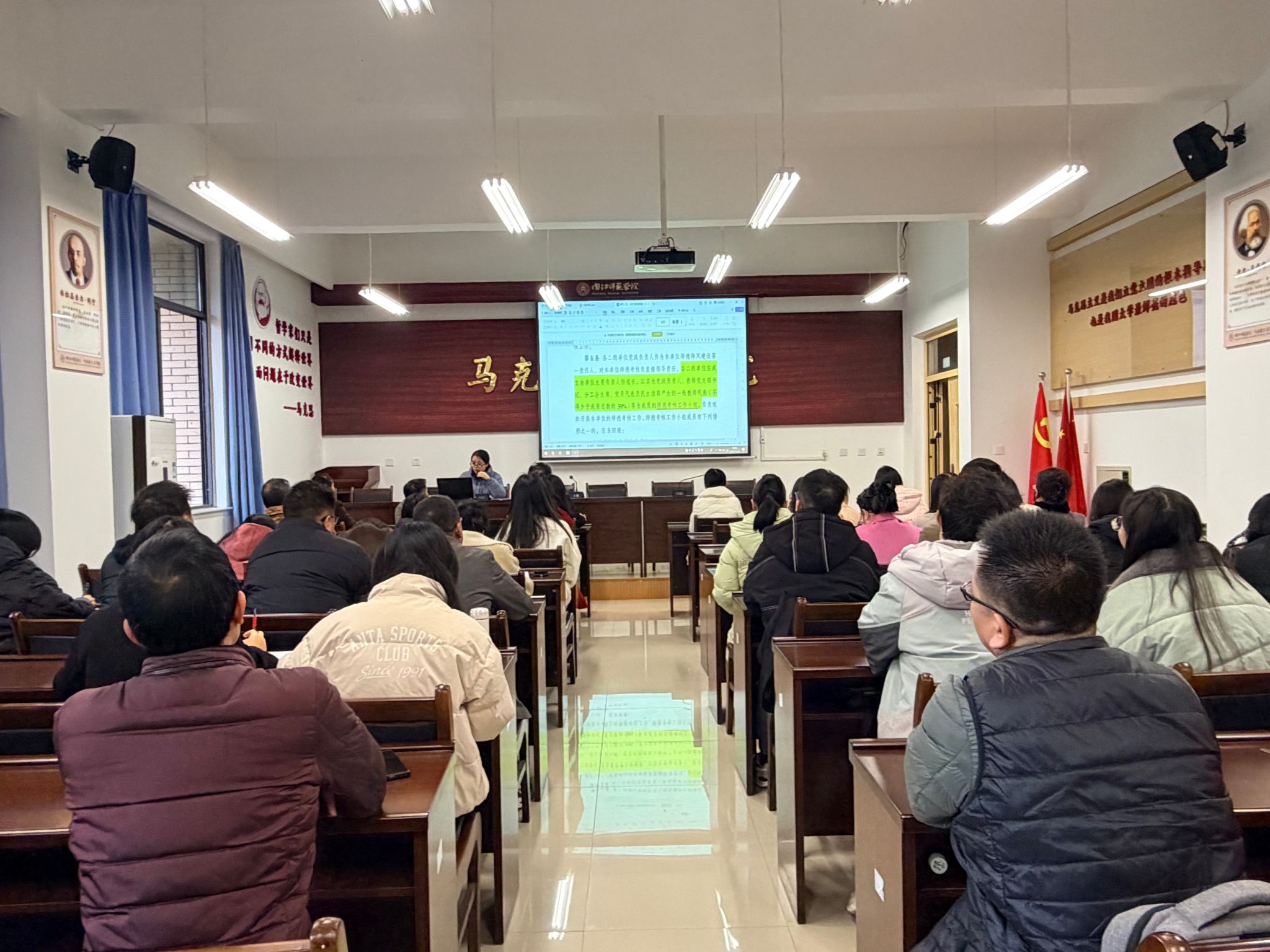 通过本次专题学习,全院教职工进一步提高了政治站位,深化了对师德师风建设极端重要性的认识。此次师德师风专题学习会既是政策宣讲会,也是思想动员会和行动部署会。太阳网集团tcy8722将以更高的政治站位、更强的责任担当、更实的工作举措,持续推进师德师风建设向纵深发展,努力建设一支政治强、情怀深、思维新、视野广、自律严、人格正的新时代高素质思政课教师队伍,为公司高质量发展贡献马院力量。