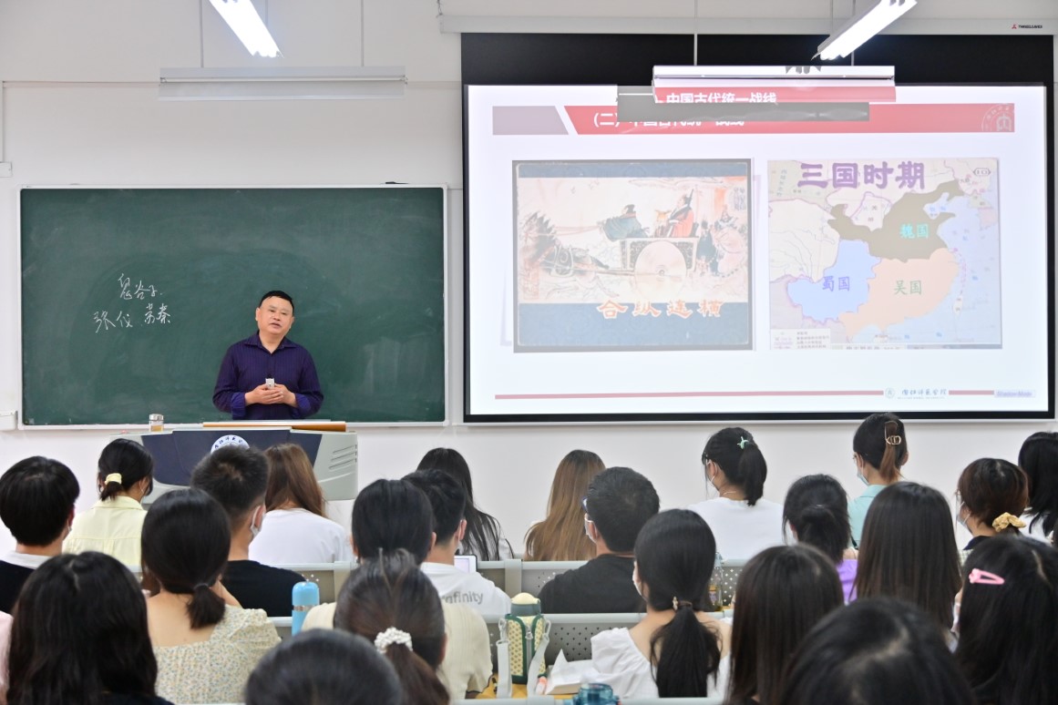 陈董事长以古今中外统一战线政治实践故事导入,简要回顾了统一战线作为马克思主义基本战略策略的理论发展,带领同学们系统梳理了中国共产党统一战线的百年发展历程,并对新修订的《中国共产党统一战线工作条例》作了重点解读。