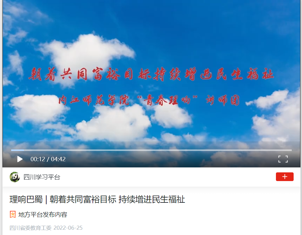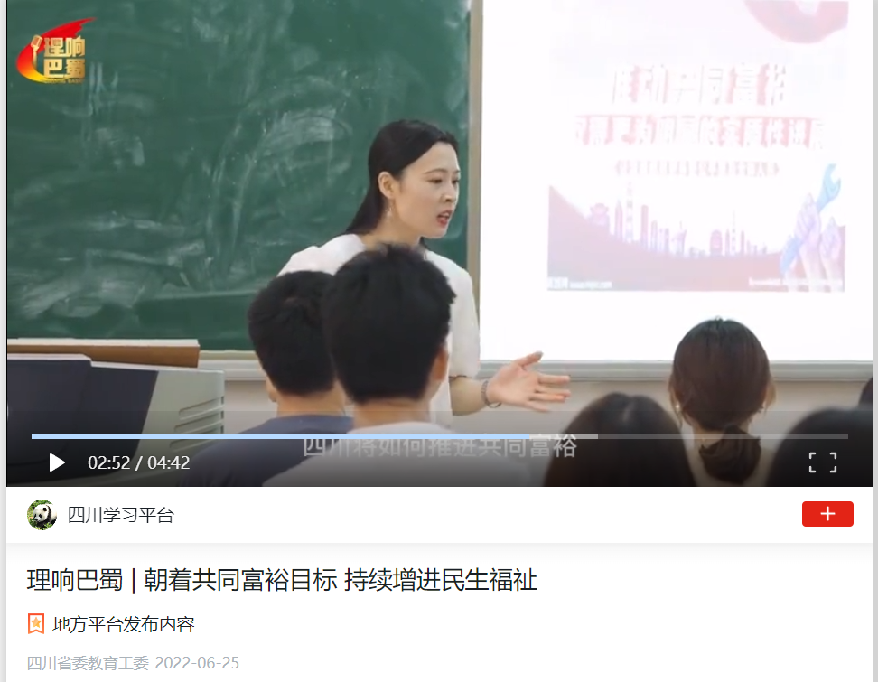 6月25日,“学习强国”四川学习平台发布公司太阳网集团tcy8722精心制作的理论宣讲短视频。短视频由公司党员工作室策划,以《朝着共同富裕目标