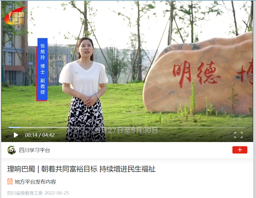 视频中,主讲教师张熊玲聚焦王晓晖代表中共四川省第十一届委员会向大会所作的工作报告,从报告第六个部分强调的“朝着共同富裕目标持续增进民生福祉”切入,以“共同富裕”和“民生福祉”为关键词,尝试解读报告强调朝着共同富裕目标持续增进民生福祉的深层思考,点面结合地回顾我省过去五年民生事业的发展成就,介绍未来我省以惠民生为根本目的持续增进民生福祉的着力重点,继往开来,令人鼓舞振奋。