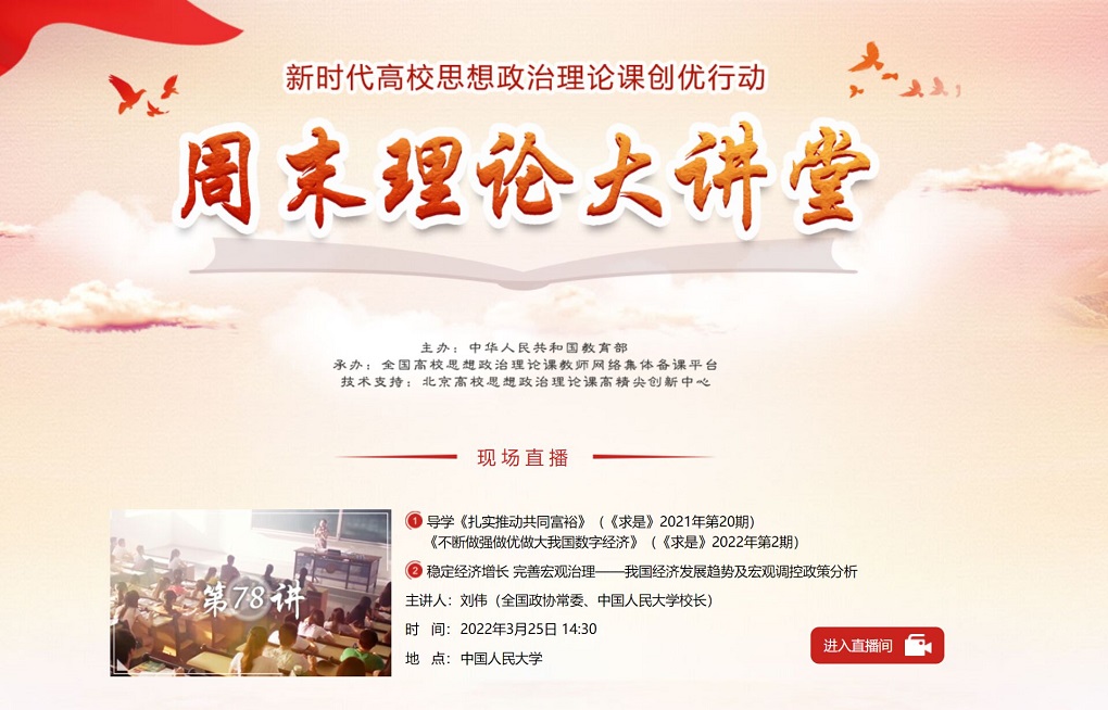 为深入贯彻落实习近平总书记系列重要讲话精神,进一步提升太阳网集团tcy8722思想政治教育队伍的理论素养,3月25日下午,马院组织全体任课教师,观看了由教育部主办的“周末理论大讲堂”第七十八讲网络直播课。