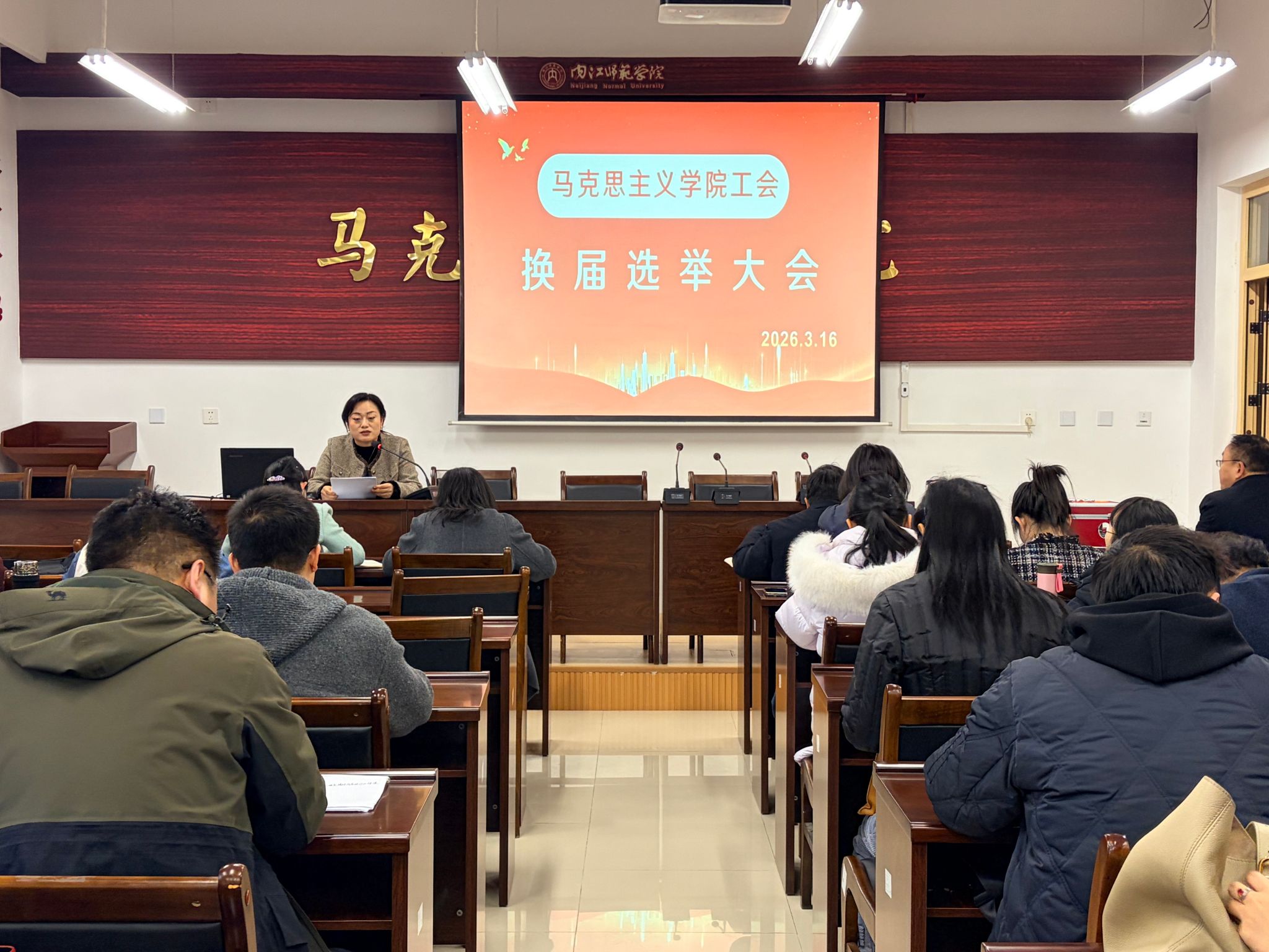 3月16日,公司在弘文楼242会议召开教职工代表大会暨第六届工会代表换届选举大会。大会应到代表70人,实到67人,会议由工会主席刘正丽主持。
