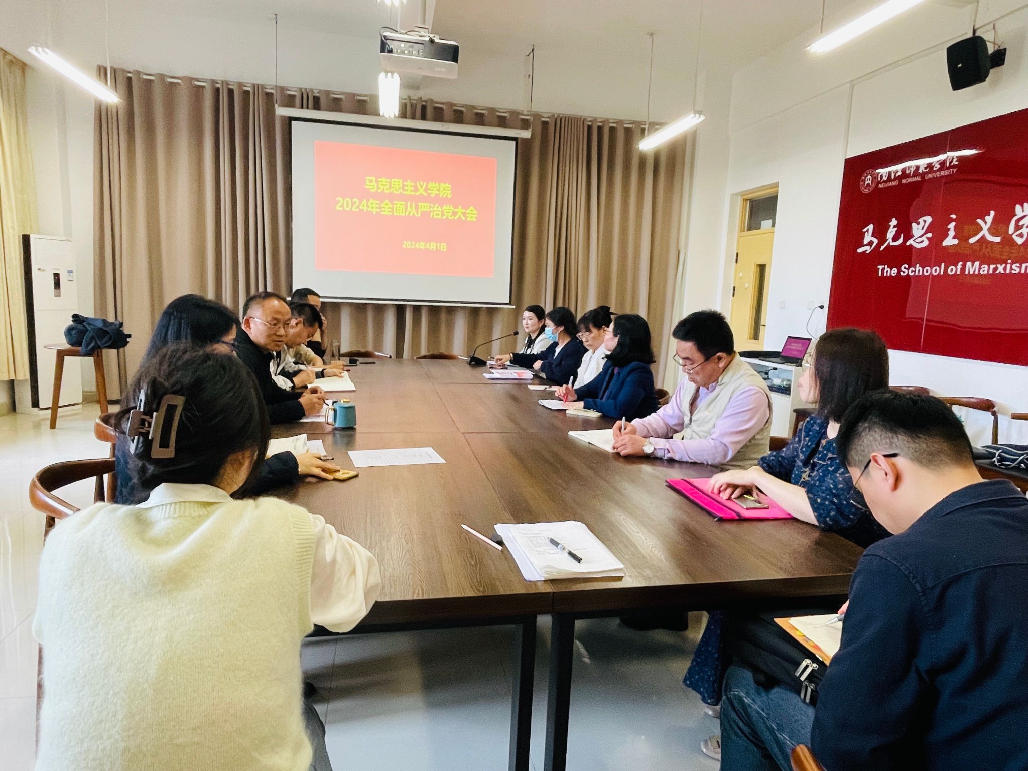 4月1日下午,公司党委召开全面从严治党专题会议,贯彻落实公司2024年全面从严治党工作会议部署。党委书记邓小明出席会议并讲话,会议由党委副书记、纪委书记管银凤主持,全体党委委员、纪委委员、党支部书记、教研室主任,以及教学办、党政办主任等参加会议。