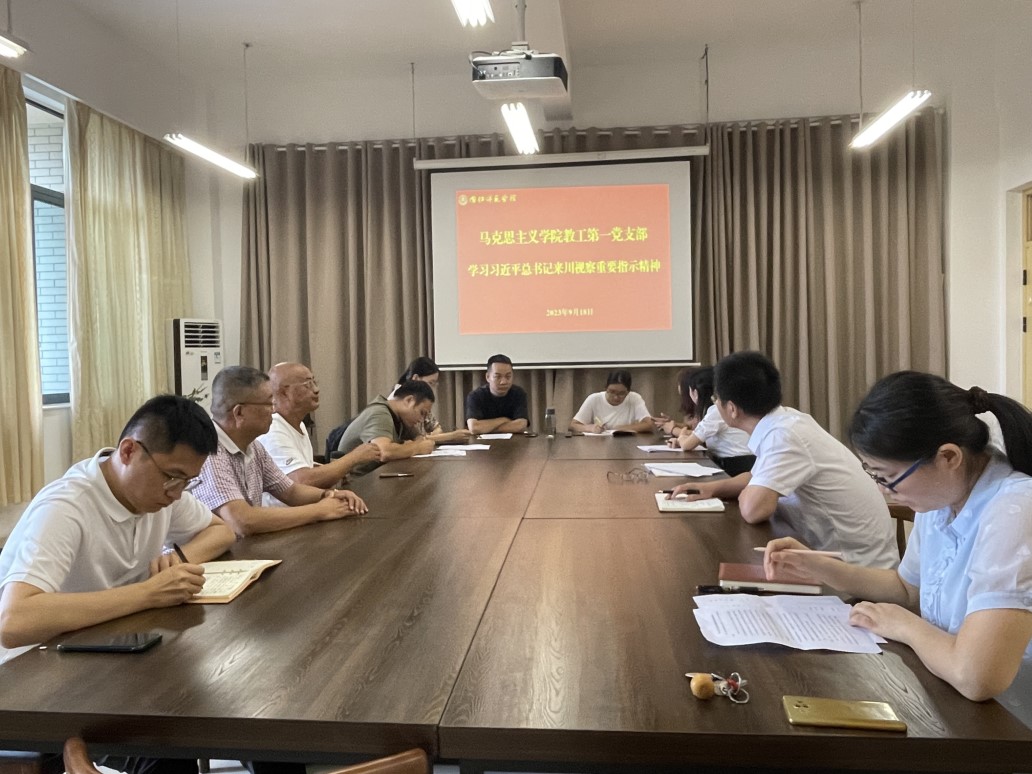 会前,支部书记刘欢对新加入支部的两位教师表示热烈的欢迎,新鲜血液的加入让支部更加充满朝气和活力。随后,与会教师围绕此次学习主题分享了自身的学习心得体会。新进教师兰丹钦表示,习近平总书记十分重视从大局上统筹四川发展大业,强调从全局上掌握四川自身的地位和使命。这种高瞻远瞩的“大局精神”不仅是引领国家、社会发展大业的必备精神,也是我们思政课教师从事教书育人事业的必备素养。公司党委书记邓小明指出,要将总书记来川视察重要指示精神与公司建设、课堂教学相结合,具体做到以下三点:一是要提高政治站位,深刻领悟讲话的重要意义。二是要将讲话精神主动融入课堂教学,提升教学效果。三是围绕公司、公司发展目标,增强工作主动性、积极性,推动公司建设更上一层楼。公司党委副书记、副经理(主持工作)徐涛以推动成渝地区双城经济圈建设为题,强调公司发展要服务双城经济圈建设,公司教师要增强责任感、使命感,对标高质量发展、内涵式发展要求,完善机制,狠抓落实。兰永海教授从习近平总书记来川视察的路线图谈起,总结凝练了总书记来川视察的重要意义,并围绕如何贯彻生态保护、文化传承、乡村振兴、科技创新“四个抓手”做了心得分享。新进教师谢凯博士认为,深刻学习领悟、认真贯彻落实总书记来川视察重要指示精神,是我们当前和今后一个时期的重大政治任务。作为一名党员教师,要积极按照公司、公司、党支部和教研室的统一要求和部署,做好“两个自觉”。一要自觉加强自身理论武装。二要自觉做好课堂教学融入。