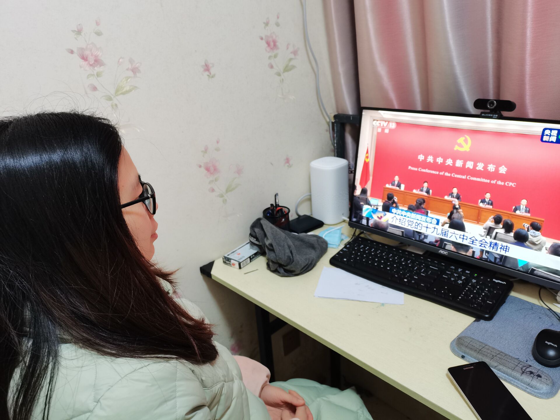 杨雪梅老师表示,通过仔细研读《中国共产党第十九届中央委员会第六次全体会议公报》、收看发布会直播,倍受鼓舞,倍感振奋,倍增干劲。她说,作为一名思政课教师,将更加自信而骄傲地把一百年来党在领导人民进行伟大奋斗中所积累的十个方面的宝贵历史经验纳入课堂教学实践中,引导青年老员工深刻领会“过去我们为什么能够成功、未来我们怎样才能继续成功”,坚定“四个自信”,投入百倍的热情和信心,以青春之我、奋斗之我为实现第二个百年奋斗目标、实现中华民族伟大复兴的中国梦添砖加瓦 。