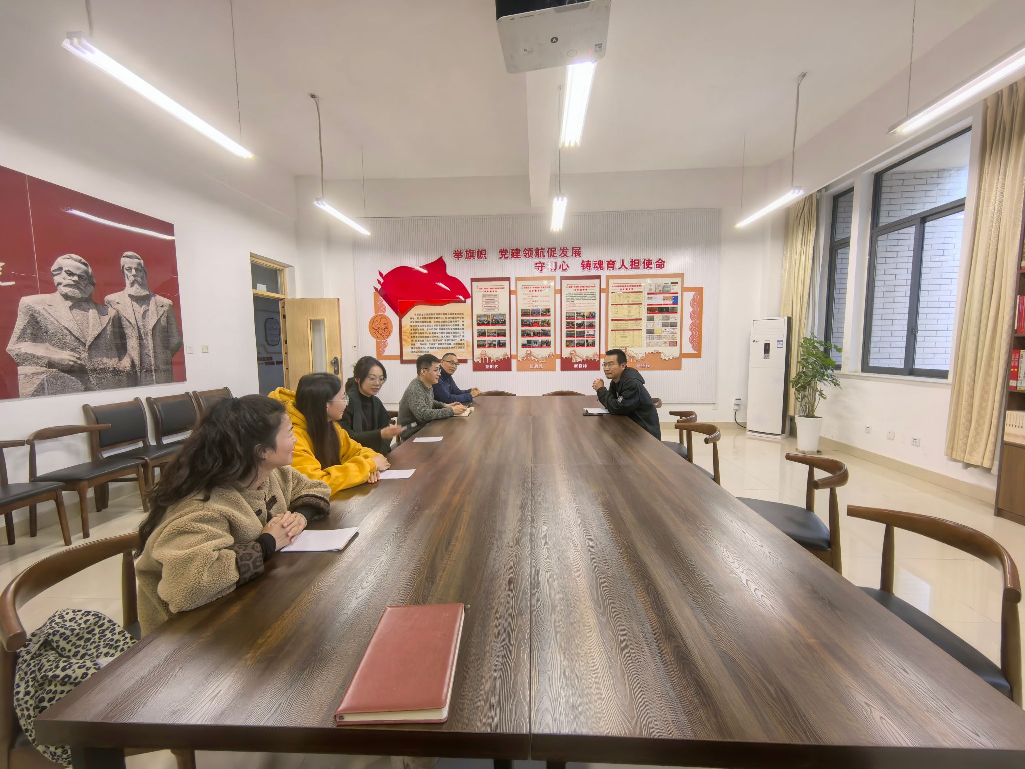 11月1日下午,中国式现代化研究团队在弘文楼241党建活动室召开团队2024年总结、交流会议。团队负责人徐涛介绍了公司、团队科研发展情况。团队成员交流了近一年来取得的科研业绩及2025年的科研规划,并就如何继续凝练方向、加强科研产出,更好地开展有组织的科研等问题进行了讨论。