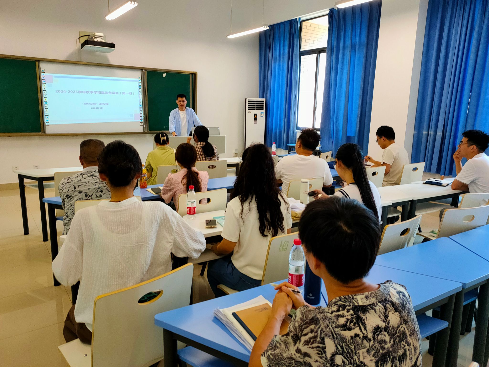 为深入学习贯彻党的二十届三中全会精神,落实教育部社会科学司印发的《关于做好2024年秋季学期全国高校“形势与政策”教学工作的通知》要求,积极响应公司第四次党代会提出的任务号召,进一步提升思政课教学质量和教师教学能力,9月5日下午,“形势与政策”课教研室在公司246教研室召开了本学期第一次集体备课会,教研室全体教师参加,会议由教研室主任谢凯主持。