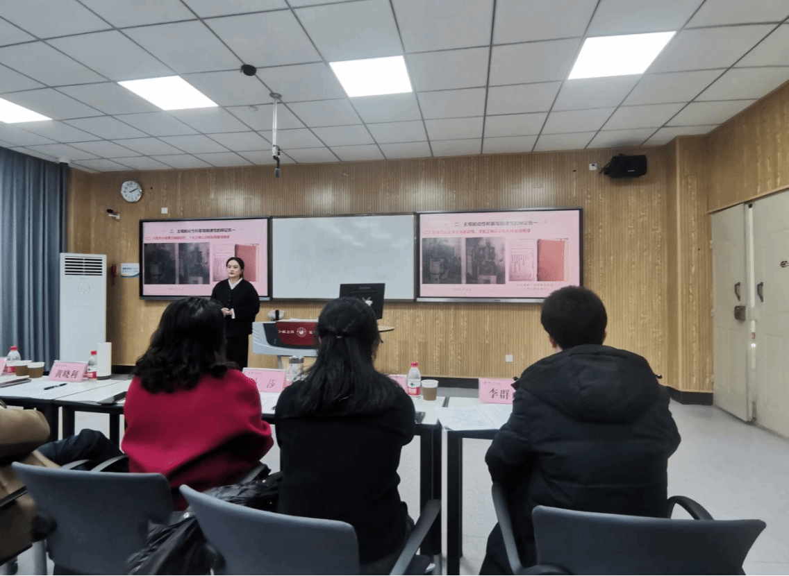 12月2日下午,“原理”教研室在弘文楼246开展了题为“客观规律性与主观能动性的辩证统一”的教学观摩活动,主要观看了蔡佳敏老师11月30日在四川省“原理”课年会上荣获二等奖的录像视频。