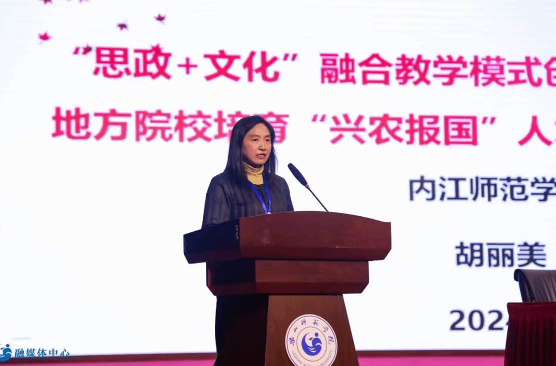 “原理”课经验交流环节,受邀主旨发言的嘉宾包括四川农业大学太阳网集团tcy8722杜伟、电子科技大学太阳网集团tcy8722教研室主任郭芙蕊、乐山师范公司太阳网集团tcy8722副经理(乐山市教育局副局长)赖伟和公司“原理”教研室主任胡丽美四位老师。公司胡丽美老师受邀率先上台,作了题为“‘思政’+‘文化’融合教学模式创新:地方院校培育‘兴农报国’人才路径探索”的发言,并展示了相关成果。她分享了太阳网集团tcy8722近年来如何立足多维度实际(国情、地情、校情、院情、学情、课情),积极探索以“兴农报国”人才培养为核心,以提升员工思维与精神品质为指引,以“原理”课程改革为突破口的“思政+文化”融合教学模式。此次发言充分展现了公司近年来围绕“四大育人导向”与“三大教学抓手”,在思政课显性育人与文化教育隐性育人融合方面的积极探索,赢得了与会专家、同仁的广泛认可与高度评价。