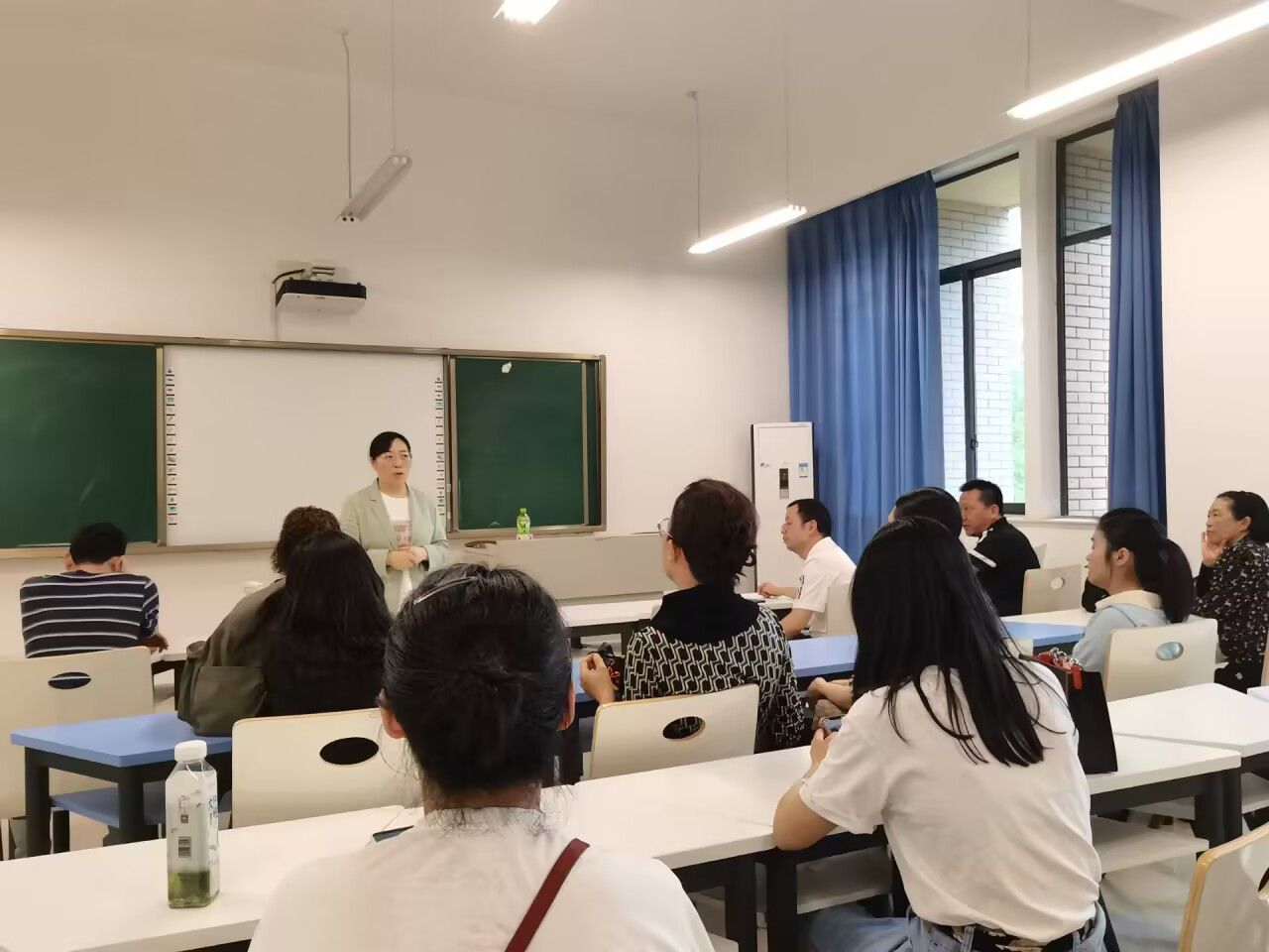 在教学研讨环节,两教研室代表分享了AI技术应用案例。“马原”教研室展示了基于知识图谱的马克思主义理论智能学习系统;“毛概”教研室分享了运用大数据分析员工思想动态的实践经验。与会教师围绕“如何把握技术应用的度”“怎样保持思政课的温度”等议题展开深入讨论。