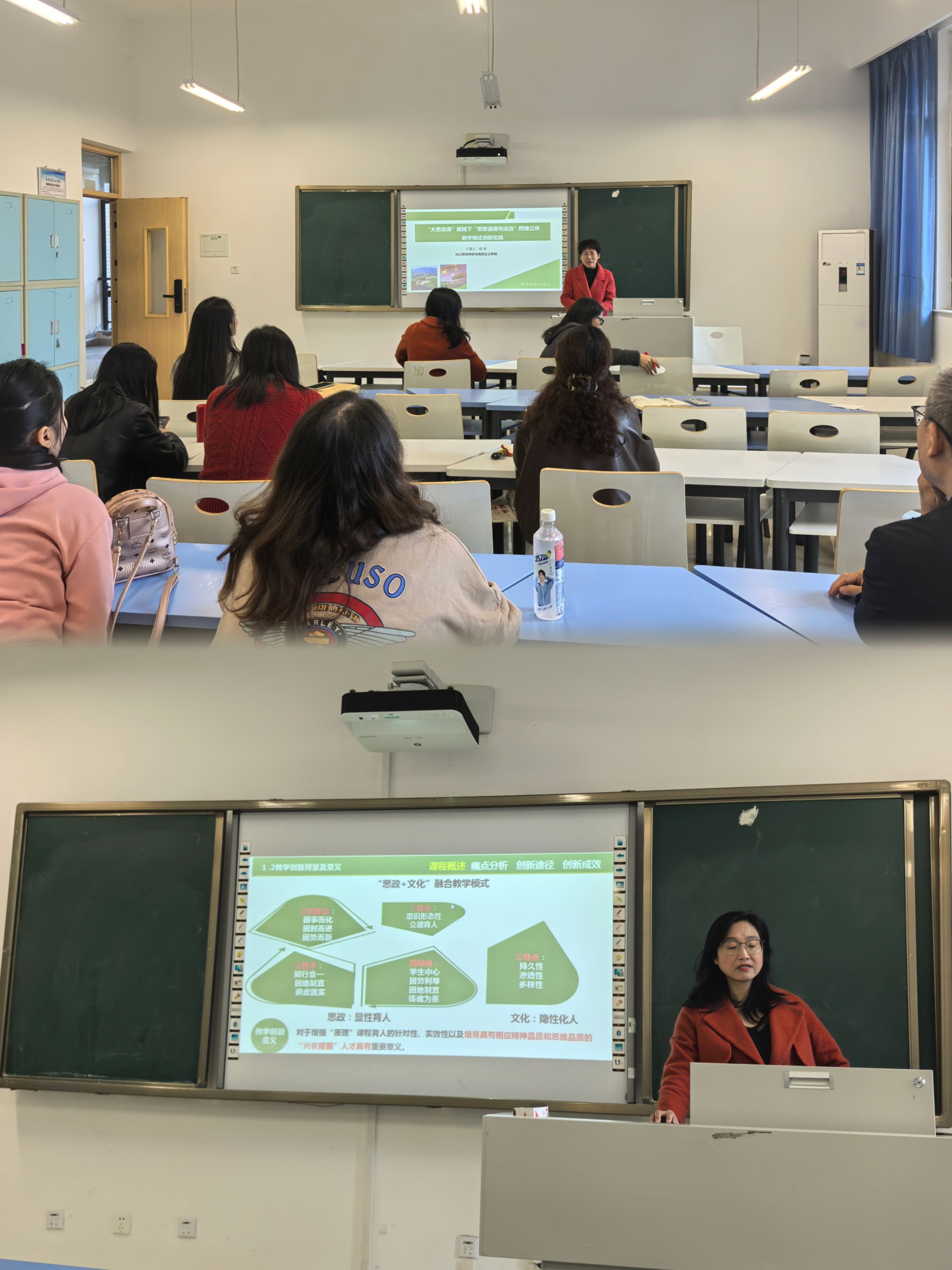 胡丽美老师则分享了“乡村振兴时代地方院校“思政+文化”融合教学模式创新的思路、做法,并重点从方法论层面进行了分享,强调课程思政教学设计应做到“选题顶天立地、逻辑自洽、问题凝练”。她指出,教学创新需明确“为何创新”“如何创新”,注重特色鲜明、依据充实,强化课程内容的理论深度与实践广度的统一,真正实现思政教育入脑入心、转化为行动。