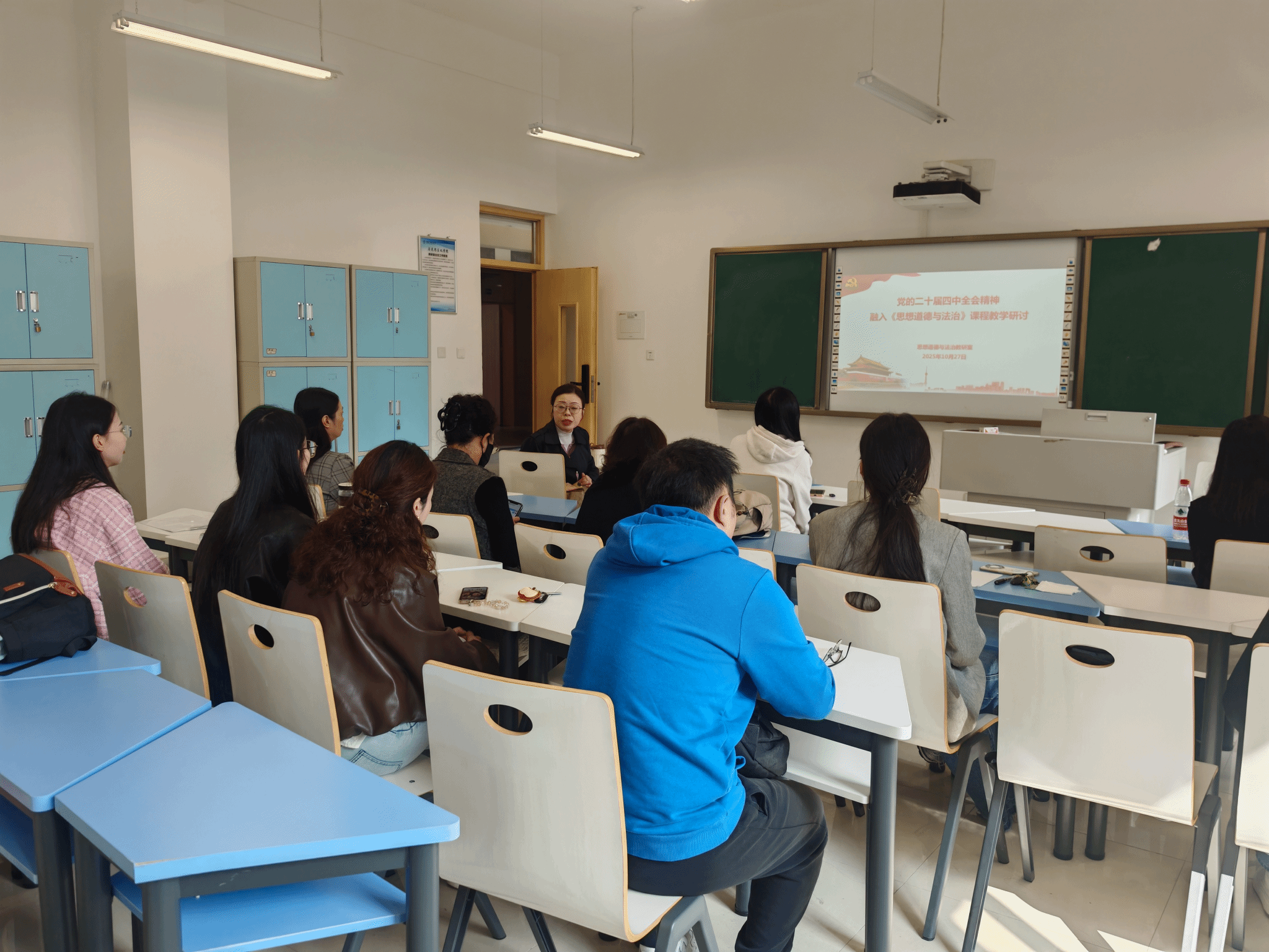 为深入学习贯彻党的二十届四中全会精神(简称“全会精神”),推动全会精神与思政课教学深度融合,筑牢课堂育人主阵地,10月27日下午,公司“思想道德与法治”课教研室于弘文楼246室召开专题教学研讨活动。活动由教研室主任胡静老师主持,教研室全体教师参会研讨。