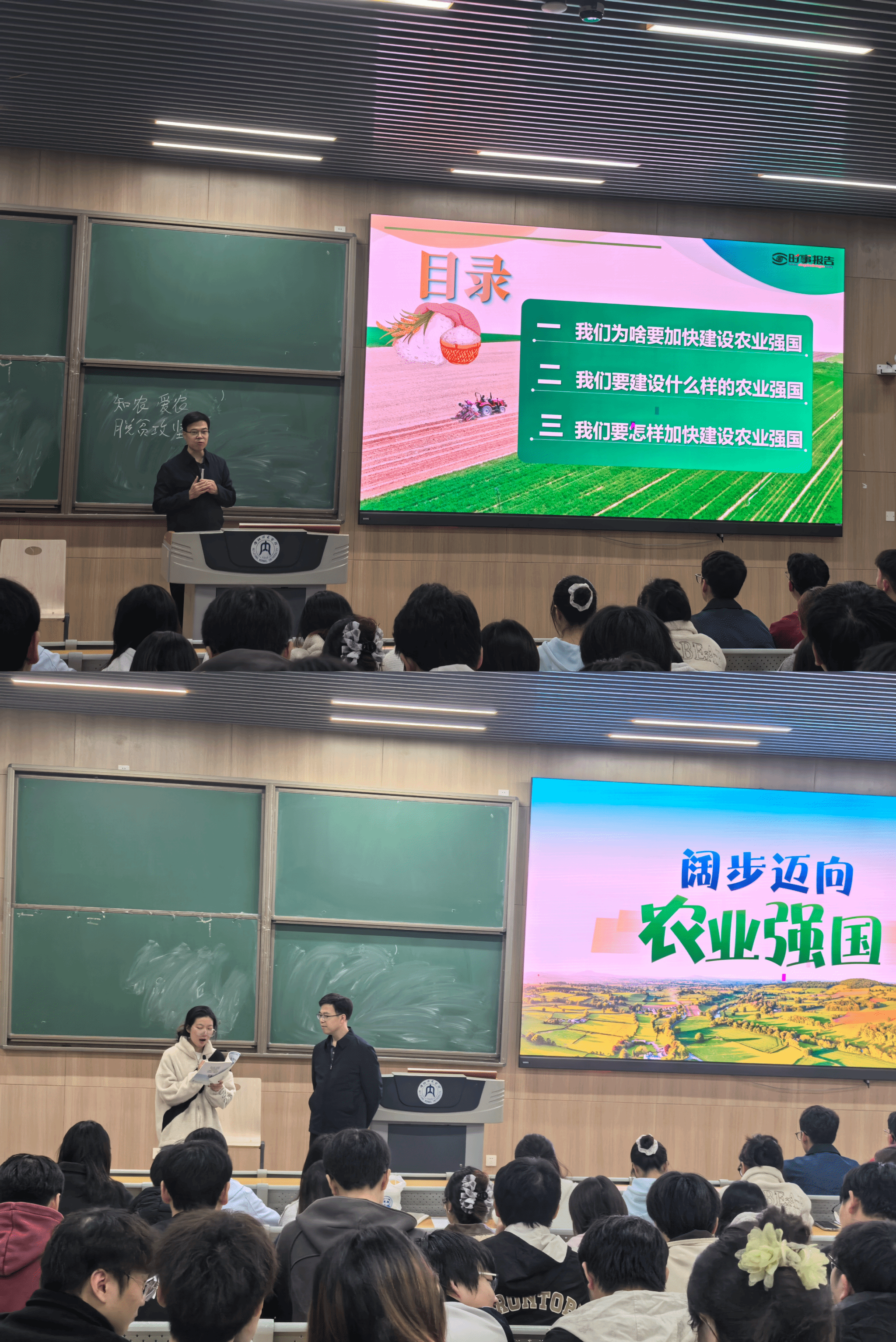 课程尾声,胡金朝勉励同学们积极关注农业农村发展,将个人所学融入国家发展的宏伟蓝图。课后,同学们一致认为,本次课程框架清晰、论述深入,引导大家系统理解了国家相关战略部署,进一步增强了知农爱农、强农兴农的使命感与责任感。