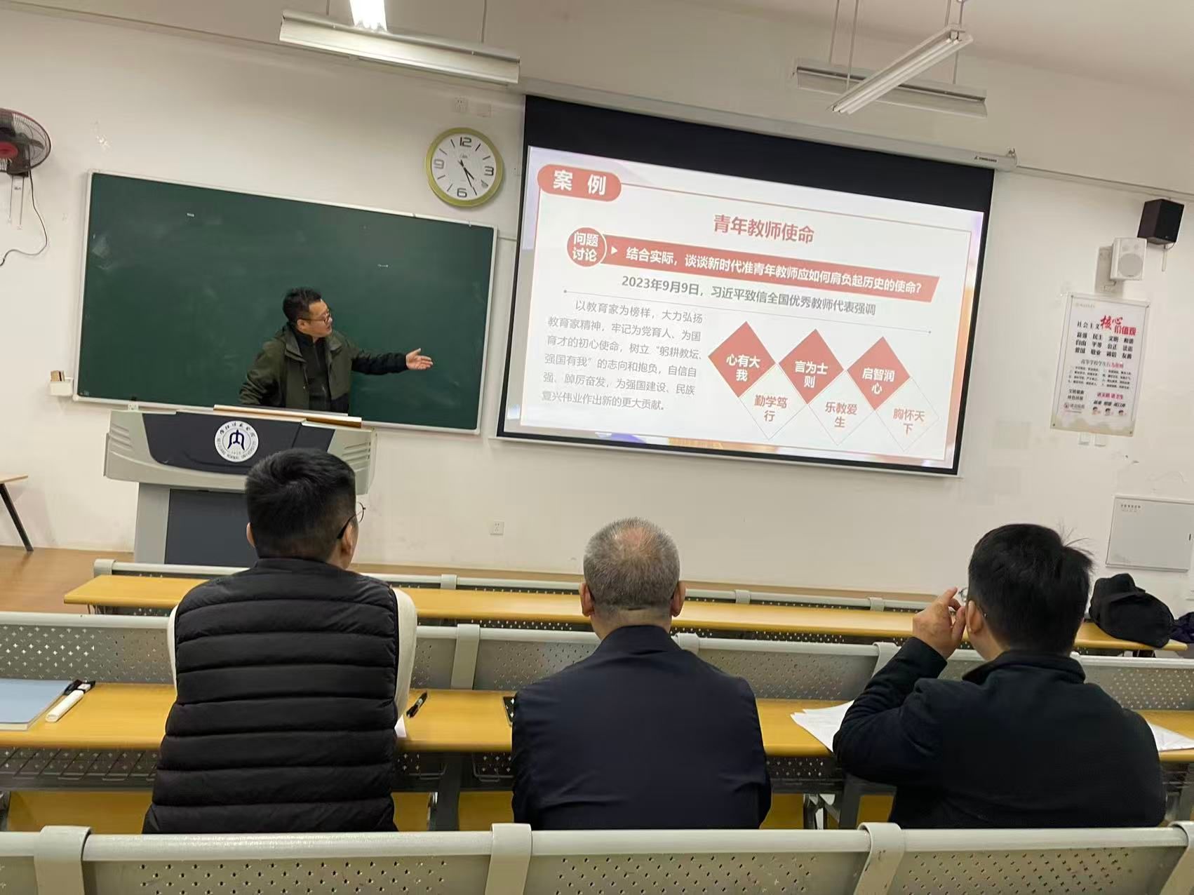 为落实公司和公司关于做好青年教师教学竞赛的选拔工作要求,2025年11月10日下午,“形势与政策”“习近平总书记教育重要论述概论”课等教研室在明德楼B-102教室举行教学竞赛。