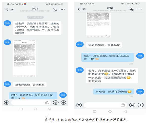《原理》教研室教师按照确定的教学基本要求和讲授要点,结合自己的教学准备,以饱满的精神状态进行在线授课。课后老师们纷纷感叹“同学们在线学习积极性和热情非常高”。胡丽美老师说:“第一次上课有一个班的同学和我互动交流的热情非常高,几乎延迟了20分钟才下课。不少员工意犹未尽,课后发消息来表达自己的观点,说‘不说憋着难受’。从员工们挚诚感人、理性客观的作答中,我们看到了当代青年老员工的精神品格和责任担当,更加领悟到了做为一名思政课老师的责任和价值。”无论是在线互动还是在线作业,同学们都表现踊跃,积极回到问题并认真开展交流讨论。