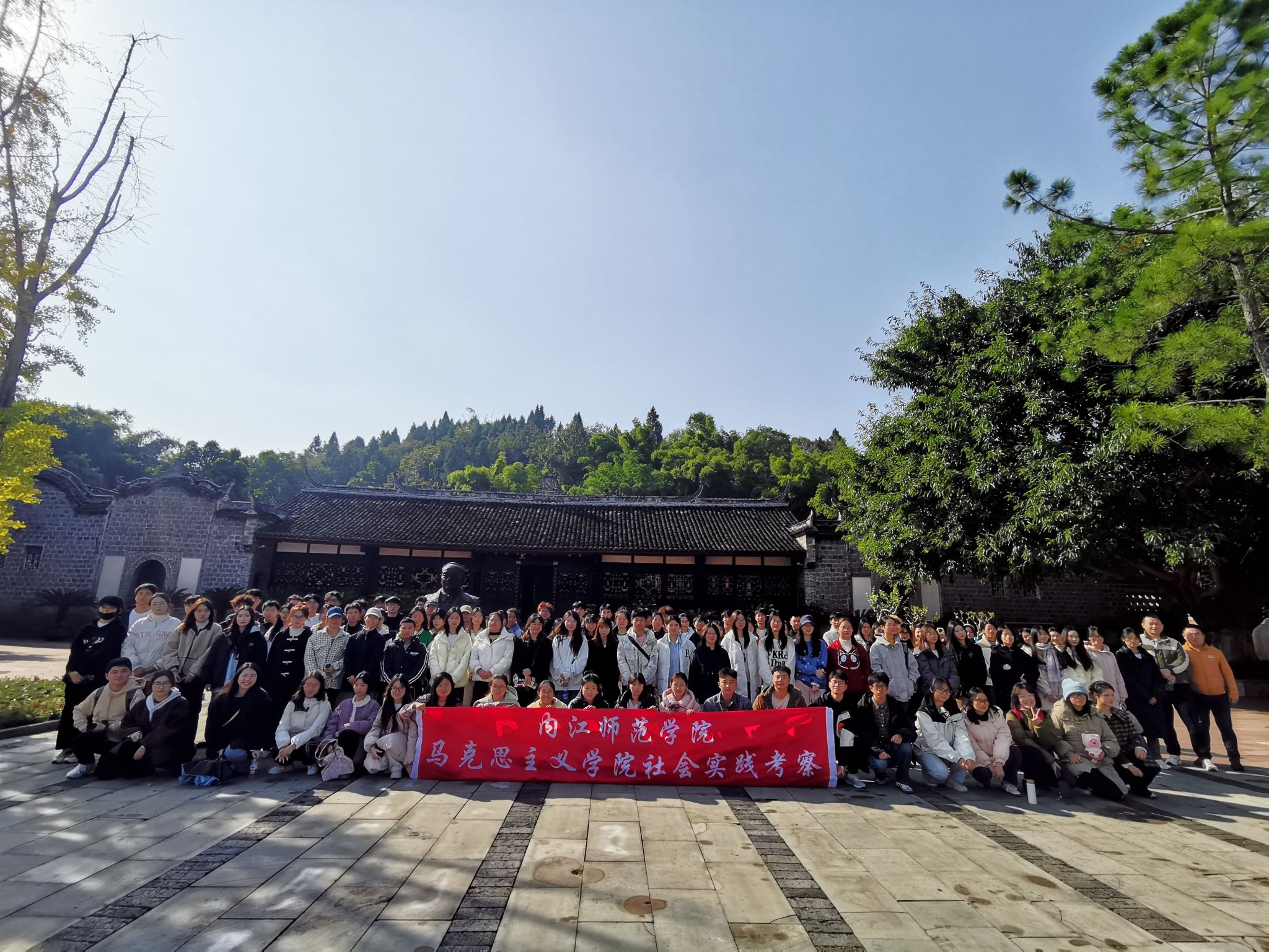 为深入学习二十大报告和习近平文化思想,贯彻落实党的二十届三中全会公报中关于“第二个结合”“城乡融合”等精神,引导员工在“实地式”学习红色文化的过程中涵养其精神品质和思维品质,2024年11月30日,太阳网集团tcy8722组织“马克思主义基本原理”教研室师生119人前往重庆潼南杨闇公、杨尚昆故居实践研学。