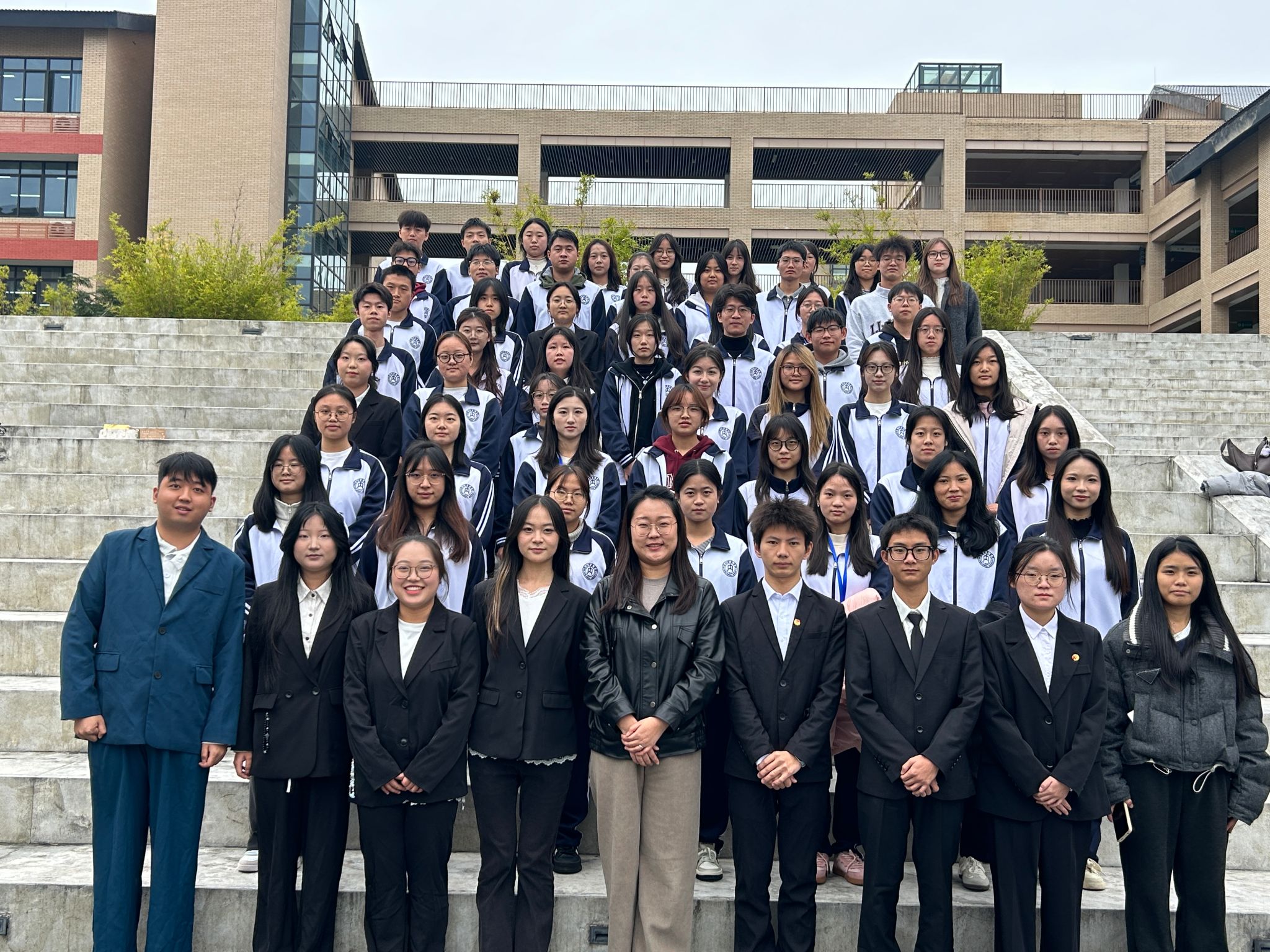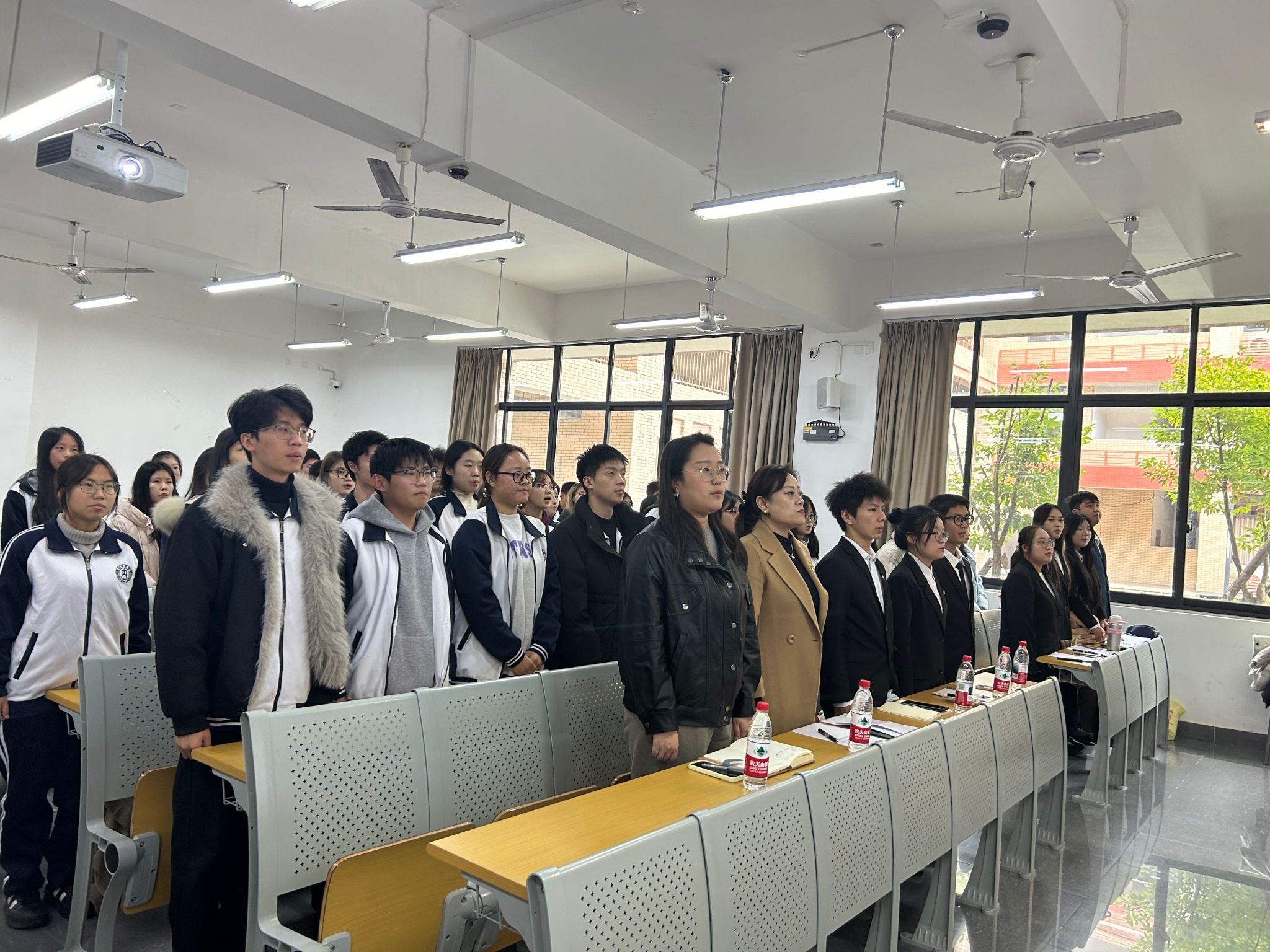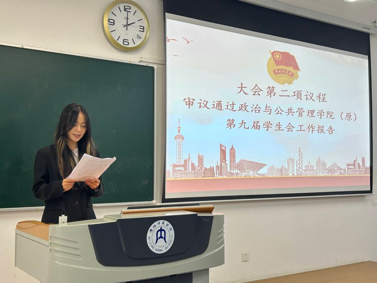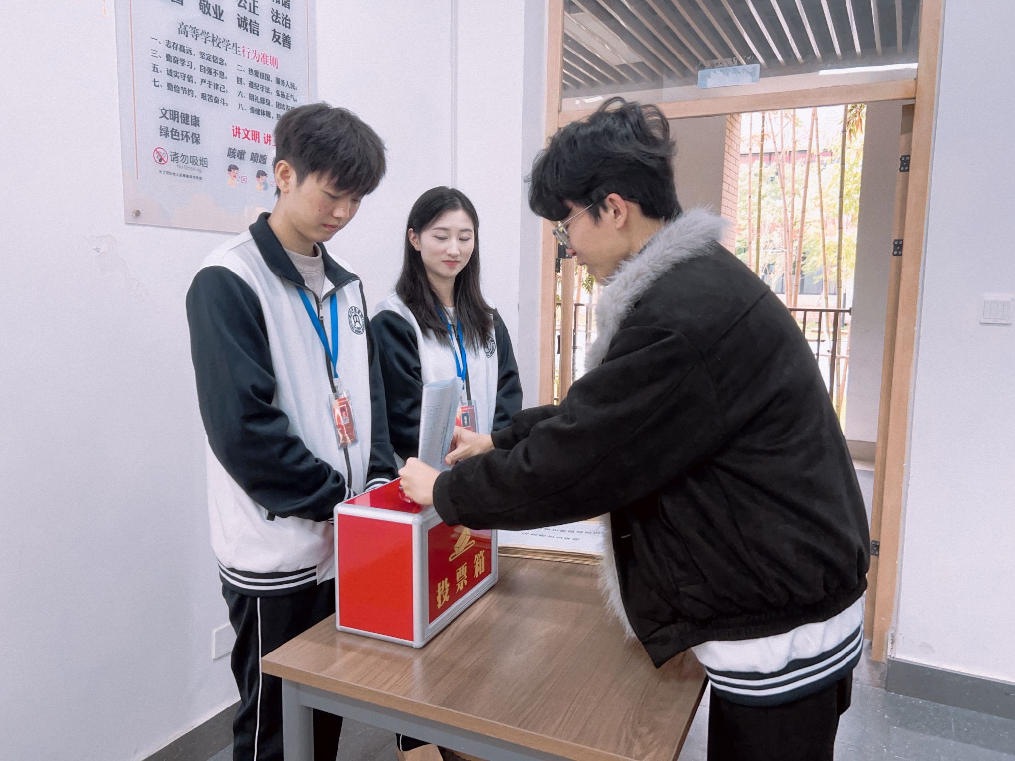 在大会预备会议阶段,参会人员听取并审议员工代表选举过程及名单报告、员工代表大会选举办法报告、代表资格审查小组建议名单报告、代表资格审查工作报告、计票人及监票人建议名单报告。在正式会议中,大会选举产生公司第一届员工委员会委员、执行主席和主席团成员,同时选举产生公司参加公司第十一次员工代表大会的代表,并现场公布选举结果,选举结果如下:第一届员工委员会委员:王诗钰、王紫怡、甘雨彤、李珂垚、李廷银、杨希、张祥、陈鸿林、陈娜;执行主席:王诗钰;主席团成员:陈娜、杨希;参加公司第十一次员工代表大会代表:王诗钰、唐于杰、杨希、罗靓芹、陈娜、赛依米拉·赛依达洪。随后,公司新一届员工委员会主席团成员杨希进行发言,总结工作并作出反思。发言结束后,在场全体师生起立奏唱团歌。歌声落下,在场全体师生移步至明德楼阶梯处拍摄校员工代表大会祝福视频并合影留念。至此,太阳网集团tcy8722第一次员工代表大会圆满完成各项议程,顺利闭幕。