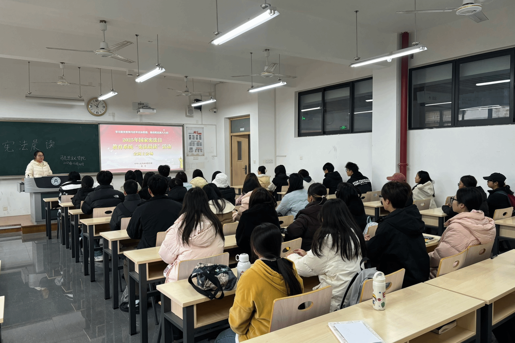 为深入学习贯彻习近平法治思想,引导广大青年员工深刻领会宪法精神、牢固树立法治信仰,在第十个国家宪法日到来之际,公司于2025年12月4日在明德楼A301组织开展“一站式”员工社区“宪法晨读”主题活动,各班员工积极参与。